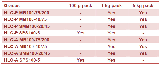 ????因此,對于極性化合物的洗脫,HILIC模式和反相模式是互補的。富士硅化學有限公司開發了兩款HILIC模式的填料,命名為“HLC”硅膠。兩種HLC硅膠都含有兩性的官能團,共價鍵合在硅膠表面。“HLC-A”用于分離純化有機酸、核酸和糖類;“HLC-P”用于分離氨基酸、多肽。