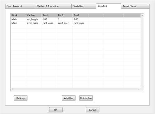 Scouting,即探索功能,通過將方法中的某些參數(shù)編輯成變量,然后通過Scouting設(shè)置,將同樣的方法運(yùn)行多次,每次僅僅是自動修改方法中的某個或某些參數(shù),從而實現(xiàn)參數(shù)的自動尋優(yōu),譬如尋找最適合的流速、尋找最適合的裝柱高度等。