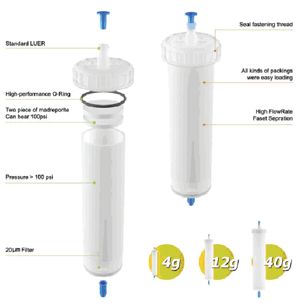 SD-0000-004 | EasyLok固體上樣空柱,上下濾片,O型圈,4g | 12×59 |